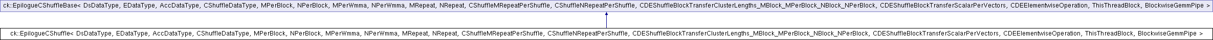 Inheritance diagram for ck::EpilogueCShuffle< DsDataType, EDataType, AccDataType, CShuffleDataType, MPerBlock, NPerBlock, MPerWmma, NPerWmma, MRepeat, NRepeat, CShuffleMRepeatPerShuffle, CShuffleNRepeatPerShuffle, CDEShuffleBlockTransferClusterLengths_MBlock_MPerBlock_NBlock_NPerBlock, CDEShuffleBlockTransferScalarPerVectors, CDEElementwiseOperation, ThisThreadBlock, BlockwiseGemmPipe >: