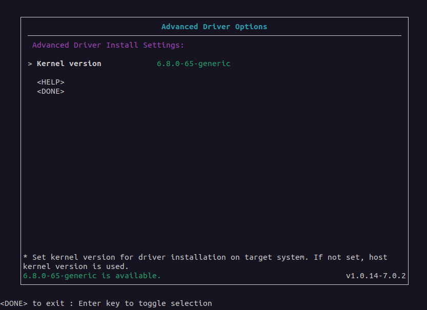 For Ubuntu and Debian 12, the Linux kernel version can be set to a target system version different from the host system creating the offline installer. See the Advanced driver options menu for details.